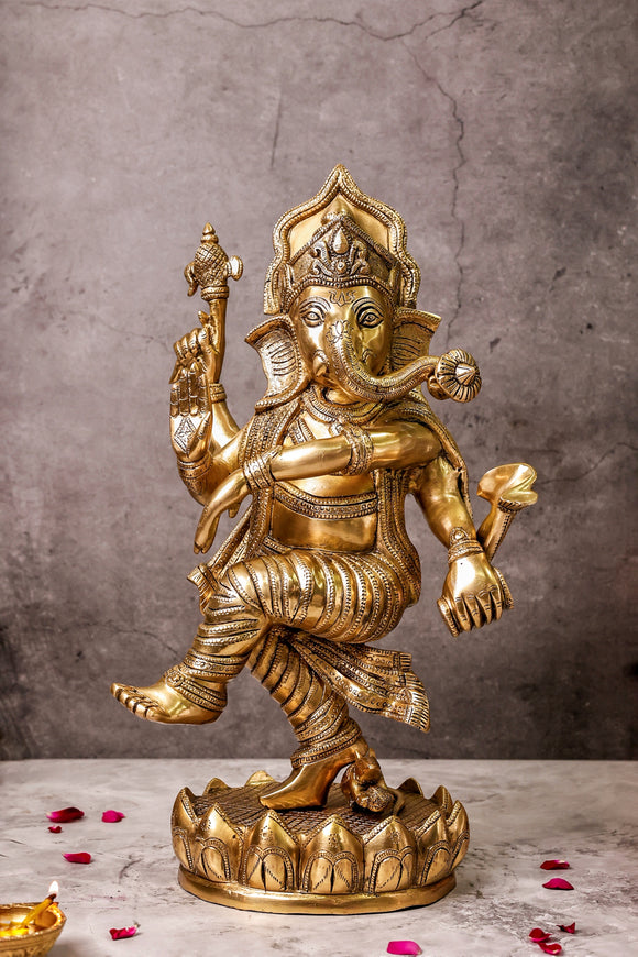 brass Ganesha idol, Abhishek (anointing with holy water), aarti (offering incense), and Vahan (Mushak). A beautiful statue such as a brass Ganpati idol can be extremely useful at home for multiple purposes like decor and a portable object that can be carried along while traveling or moving homes.