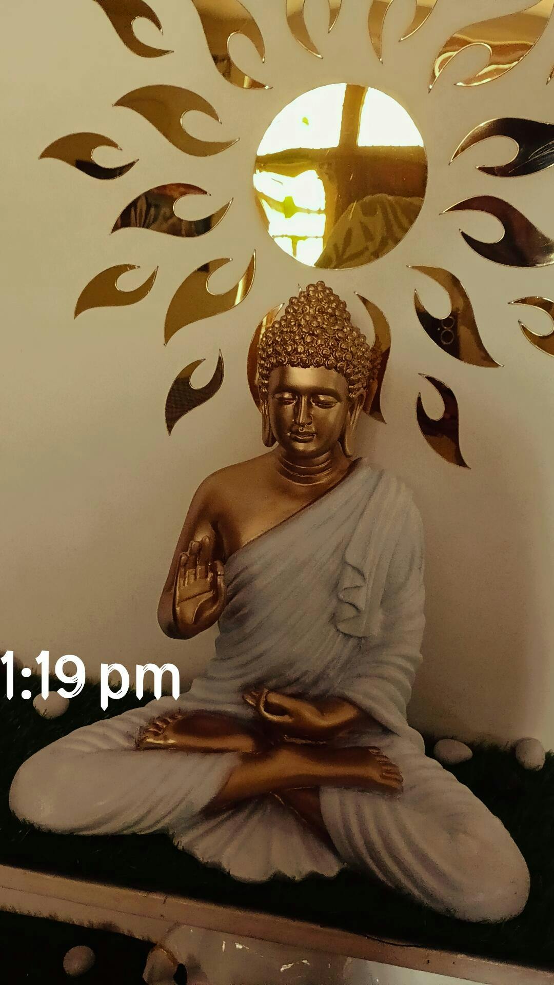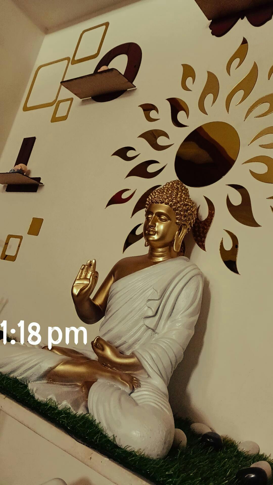 Upgrade your antique home decor with the Polystone Golden White Buddha Statue. Standing at 14.5 inches, this exquisite Buddha murti exudes tranquility and wisdom. Its stunning golden white finish and intricate craftsmanship provide the timeless elegance of a brass Buddha statue, combined with the durability of polystone. Perfect for meditation spaces or as a meaningful gift, this Buddha statue adds a serene and sophisticated touch to any setting. Enhance your home with the peaceful presence of this beautiful and timeless Buddha statue.